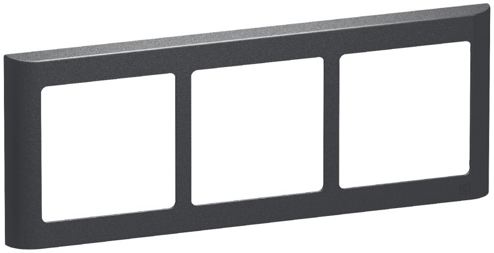 6. Lodret LK FUGA Soft 63 designramme i koksgrå med tre modulåbninger på hvid baggrund.LK FUGA – Soft 63 loddrett designramme, 3½ modul, koksgrå + teknisk monteringsramme