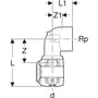 Geberit FlowFit bend 90° med innvendig gjenge: CuSn4Zn2PS, d=50 mm, Rp=1 1/2". Blyfri rødgods.