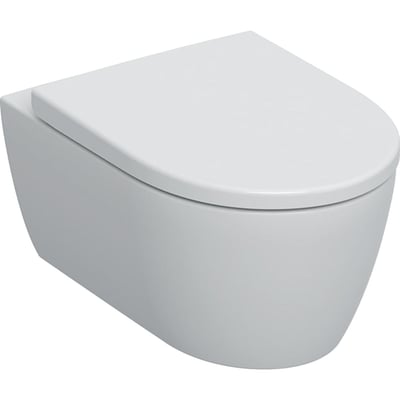 Komplett Geberit iCon vegghengt toalettsett i matt hvit med soft close toalettsete og skjult montering. Rimfree design for enkel rengjøring.