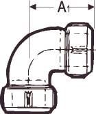 Georg Fischer Primofit kompressionsvinkel i galvaniseret blødstøbegods, der viser den 90-graders bøjning og koblingsgevind.Teknisk tegning af Georg Fischer Primofit kompressionsvinkel med målangivelse 'A1' og dimensioner markeret.