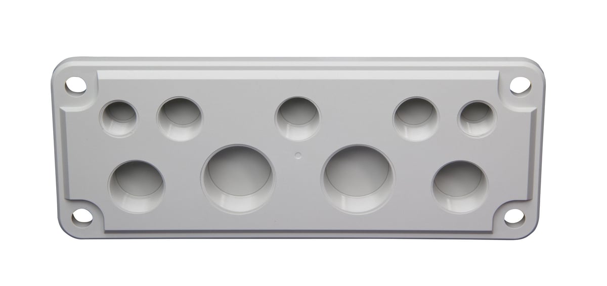 Gjengeflens med gjenger i polykarbonat, str. 2, til 280mm kasseside. Leveres med skruer: 2 x M16 + 3 x M20 + 2 x M25 + 2 x M32.