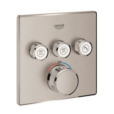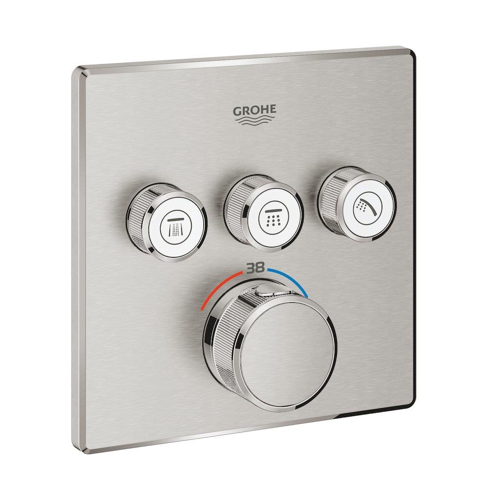 • Grohtherm SmartControl • Termostat for innbygging med 3 ventiler • Frontplate • må installeres med: GROHE Rapido SmartBox 35 600 • metall veggplate med GROHE QuickFix (a...