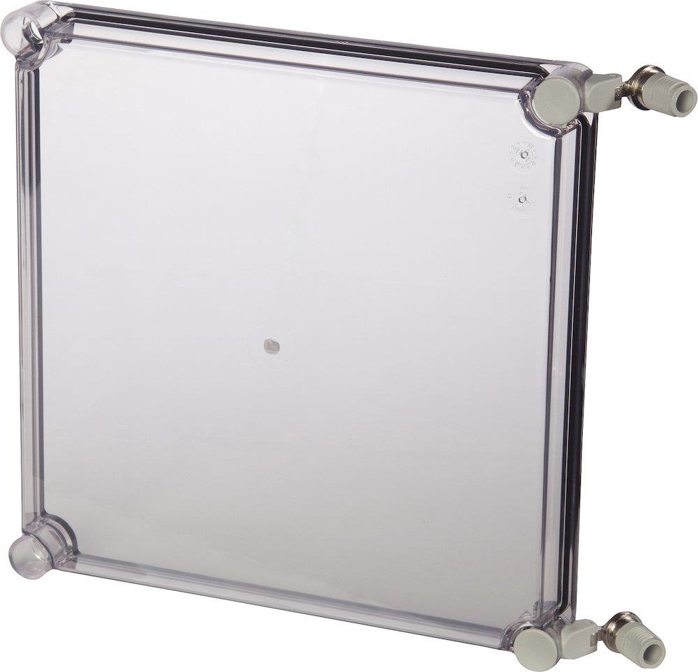 Lokket leveres med fingerskruer for enkel og sikker montering. Polykarbonatmaterialet sikrer høy slagstyrke og lang levetid, selv under krevende forhold. Den transparente fargen gjør det lett å inspisere innholdet uten å bryte forseglingen.
