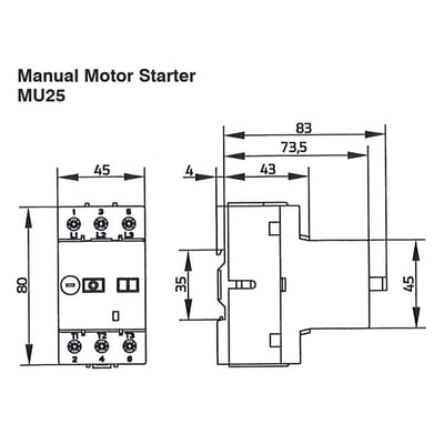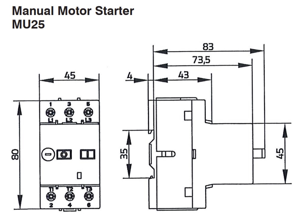 Benedikt håndbetjent motorvern MU25 (16-20A) for innendørs bruk. Beskytter motorer effektivt. Egensikker opp til 6,3A med en kortslutningsbryteevne på 50kA.