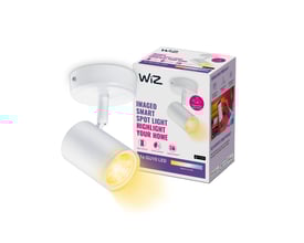 WiZ Imageo full color spotlampe i hvit. Juster lyset i 16 millioner farger via WiZ appen eller stemmestyring. Enkel installasjon og betjening.