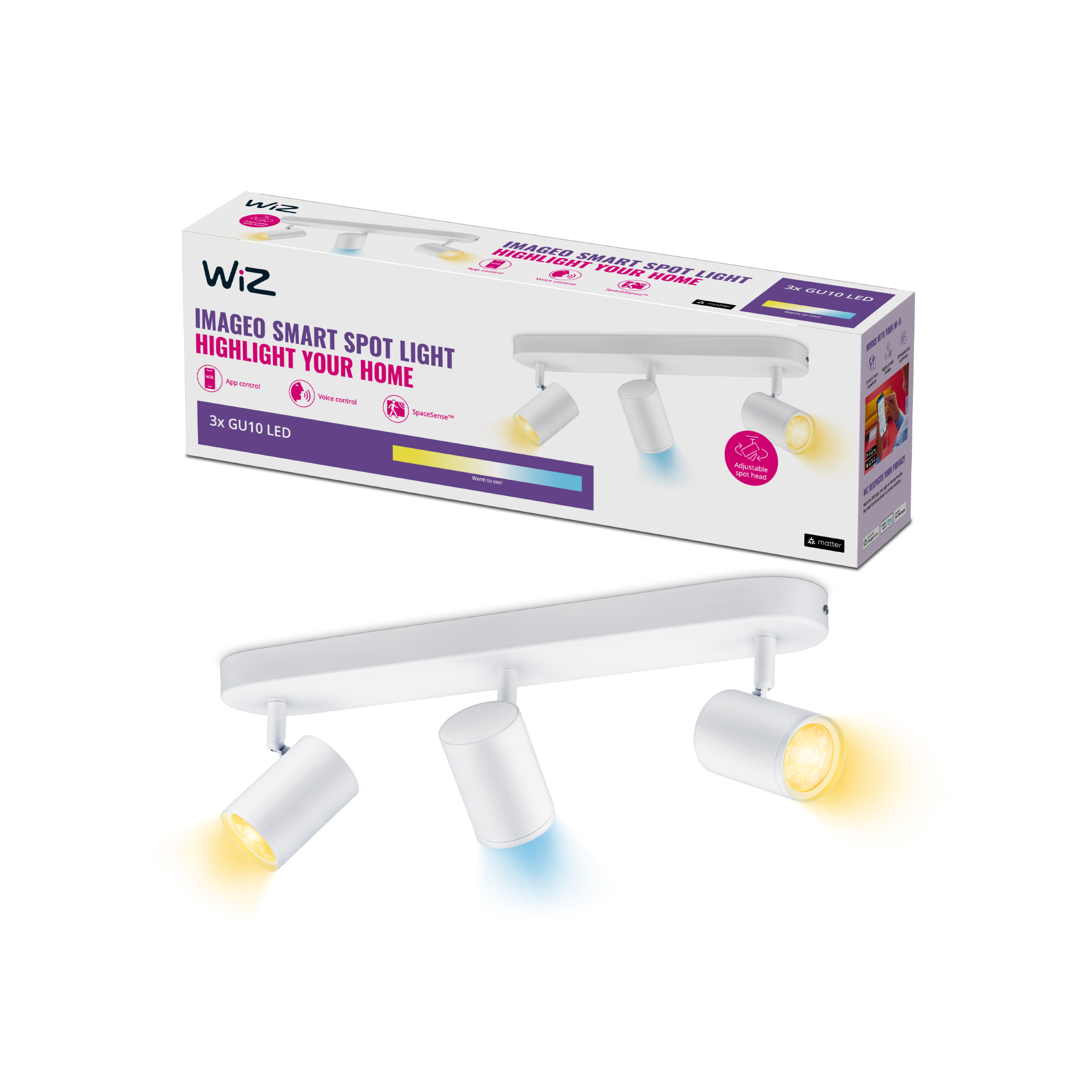 WiZ Imageo tunable white spotlamper lar deg nyte den perfekte belysningen i hvilken som helst tone av varmt til kjølig hvitt lys. Med tre justerbare spothoder får du her en stilren og moderne lampe i hvit, som lett lyser opp og fremhever dine kunstverk, verdigjenstander eller deler av ditt hjems interiør.