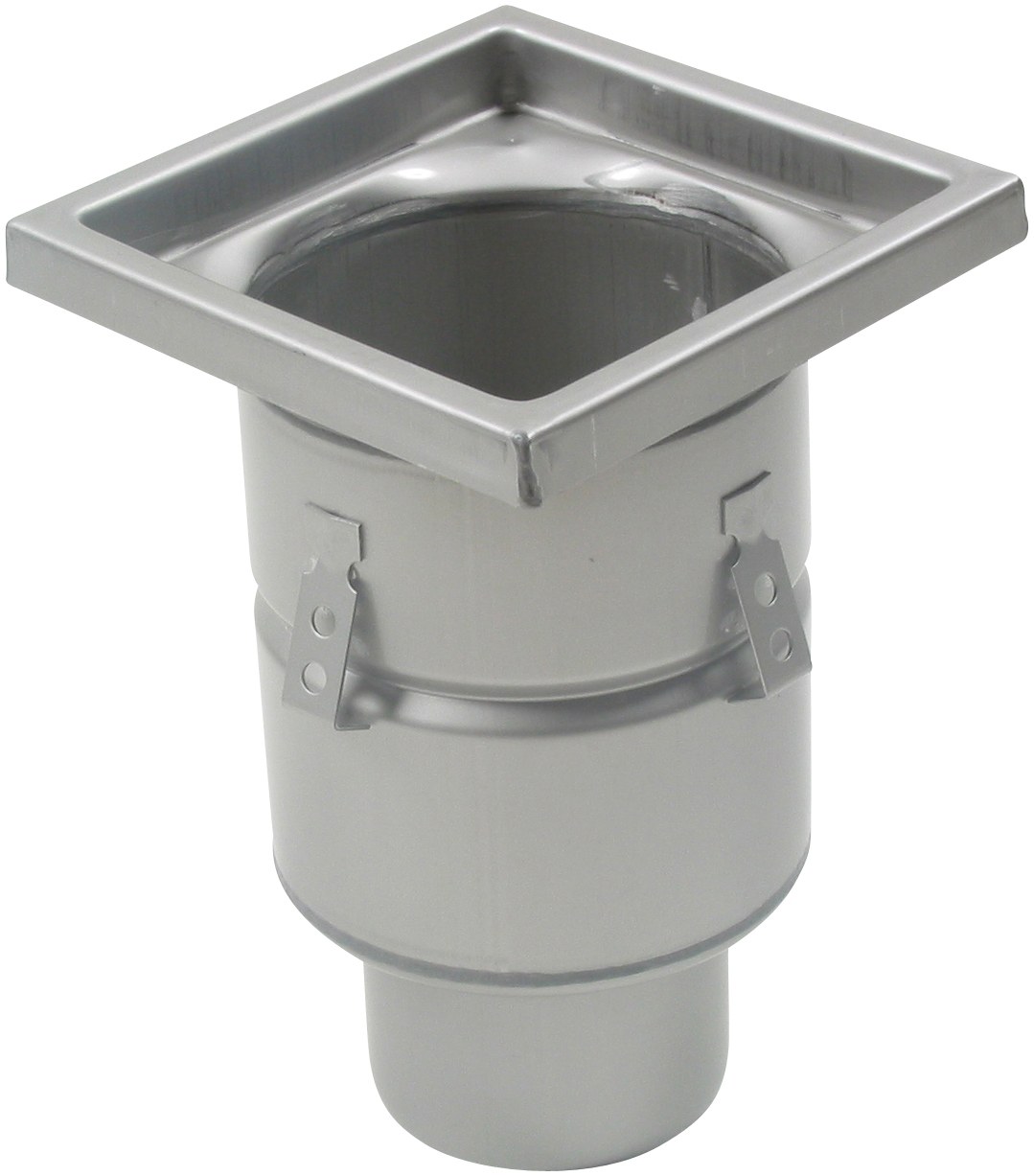 Dette industrigulvavløpet fra BLÜCHER er designet for bruk i betong- og flisegulv. Det har en ramme på 200 x 200 mm og et vertikalt utløp med en diameter på 110 mm.