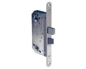 Med falle og lås. Brunlakkert rektangulær stålsøyle og sluttstykke. Figurkarmnøkkel (20 variasjoner). Leveres med en forkrommet nøkkel. Hull for skruer Ø 4,0 mm flh.