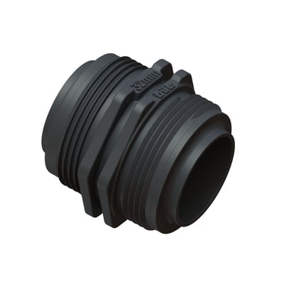 Dobbeltnippel for sammenkobling mellom Isiflo Ecoline ventil og reparasjonsmuffe i 32mm. Enkel montering ved å fjerne omløpsmutter, klemring og trykkring.