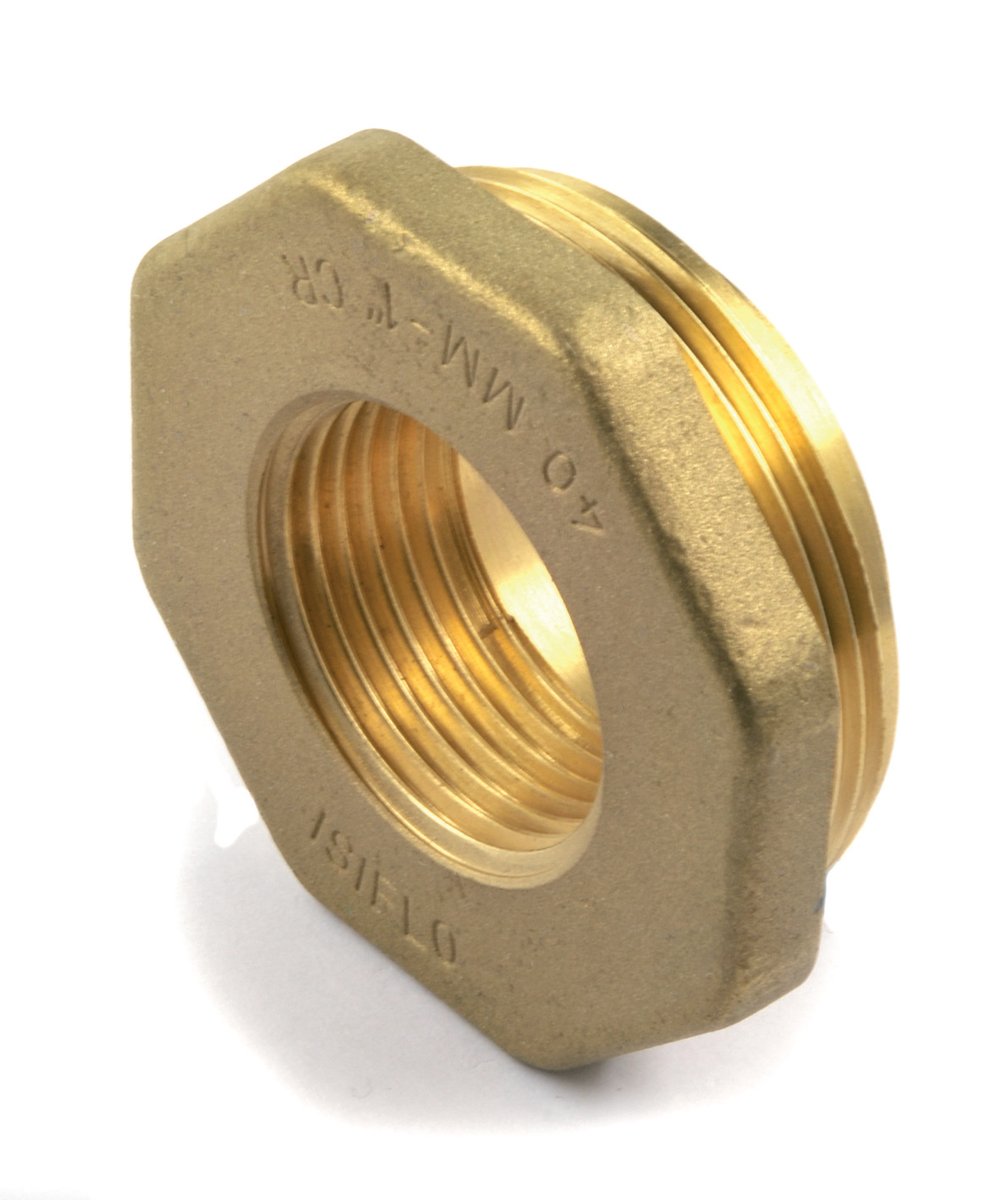 Isiflo overgangsmuffe i avsinkningsbestandig messing med EPDM O-ring. Sikrer en tett forbindelse til kobber-, PEX-, PVC- og PE-rør for kaldtvann.