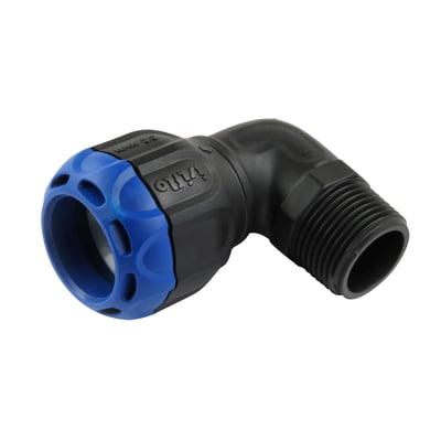 En 90° vinkelkobling med nippel i komposittmateriale. PN16, VA-godkjent og enkel å montere uten spesialverktøy.