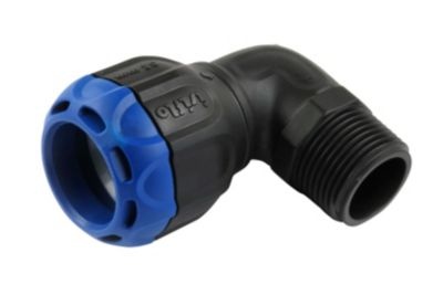 Isiflo Sprint vinkel 90° med 'Push-in' kobling for PE-rør. Produsert av korrosjonsfritt komposittmateriale. Godkjent for drikkevann. Temperaturområde 0-40°C.