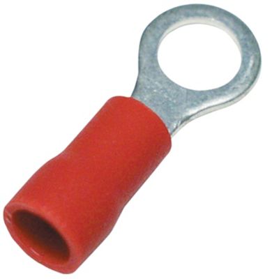 Isolerte ringkabelsko i fortinnet kobber med rød PVC-kappe. Godkjent for temperaturer fra -10°C til +75°C og UL-godkjent.