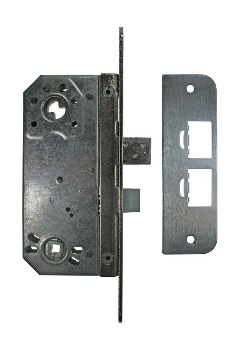 For låsing av hoveddører og toalettdører. Rigelen har et fremspring på 21mm i en omdreining ved nøkkeldreining 90°. Sterk fjær, som forhindrer at dørhåndtaket henger. Vendba...