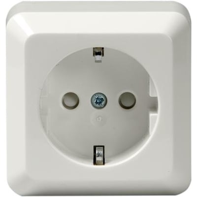 Stikkontakt m. jord uten bryter, IP 21, Jussi, skruløse klemmer for rask montering av maks. 2 stive ledere per terminal.