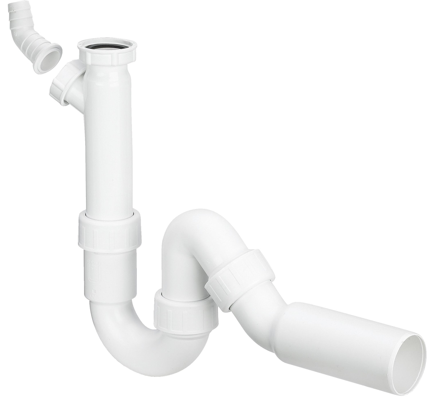 Rørvannlås til kjøkkenvask fra Viega. 50mm. Plast. Med 45° avløpsbøy og spillvannsslangetilkobling. Kvalitetskontroll iht. DIN EN 274. Modell 7985.30.