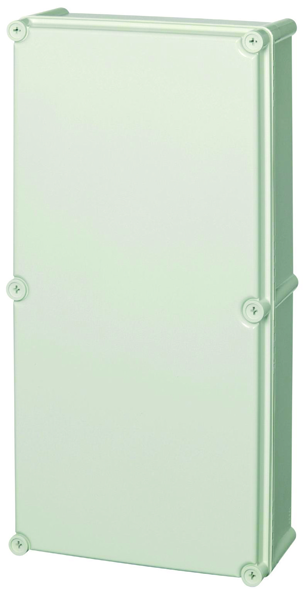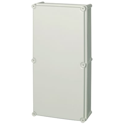 Komplett EK Solid boks med grått deksel i polykarbonat. Glatte sider uten flensblanketter. Tilgjengelig i størrelser fra 190x190x130 til 720x560x250mm.