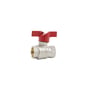Kompakt kuleventil med fullt gjennomløp og rødt T-håndtak. Forniklet messing.