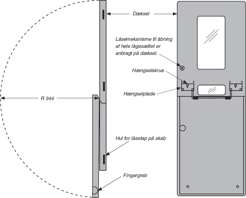 Lukkesettet, som dekker hele skapet, er i ytterste og innerste luke utstyrt med avlesingsvindu med UV-filter.