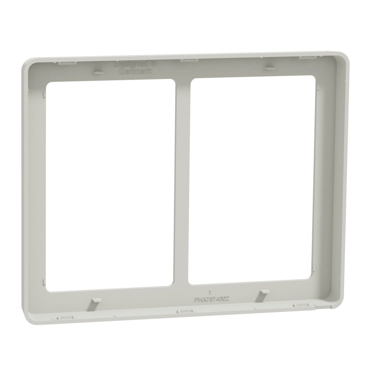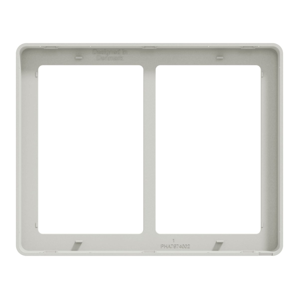 3. Lauritz Knudsen LK FUGA Base 63 design ramme, 2 modul, lysegrå, med to firkantede åbninger.LK FUGA – Base 63 designramme, 2 modul, lys grå + teknisk monteringsramme