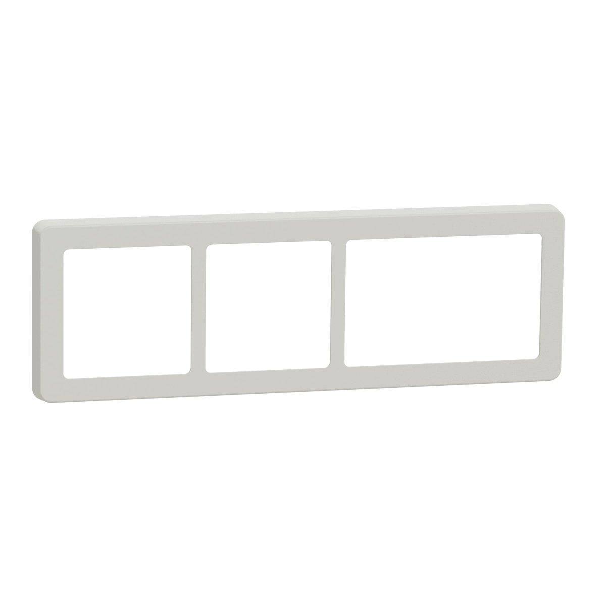 7. LK FUGA Base 63 designramme i lysegrå med plads til 2x1½ modul, vist forfra.LK FUGA – Base 63 designramme, 2x1½ modul, lys grå + teknisk monteringsramme