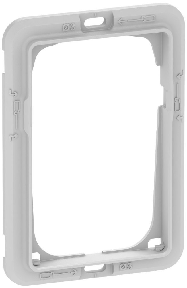 Rammen er fremstilt i et halogenfritt og PVC-fritt materiale, som overholder RoHS-direktivet, noe som understreker produktets kvalitet og miljøvennlighet. Den passer til en modulhøyde på 1½ modul og har en flott overflate i metallfargen stål.