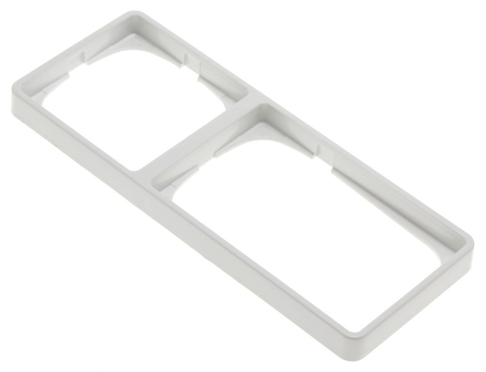 13. Hvid LK FUGA Baseline 50 ramme med plads til to 1-moduls indsatser, vist lodret på hvid baggrund.LK FUGA – Baseline 50 ramme, 2 modul, hvit