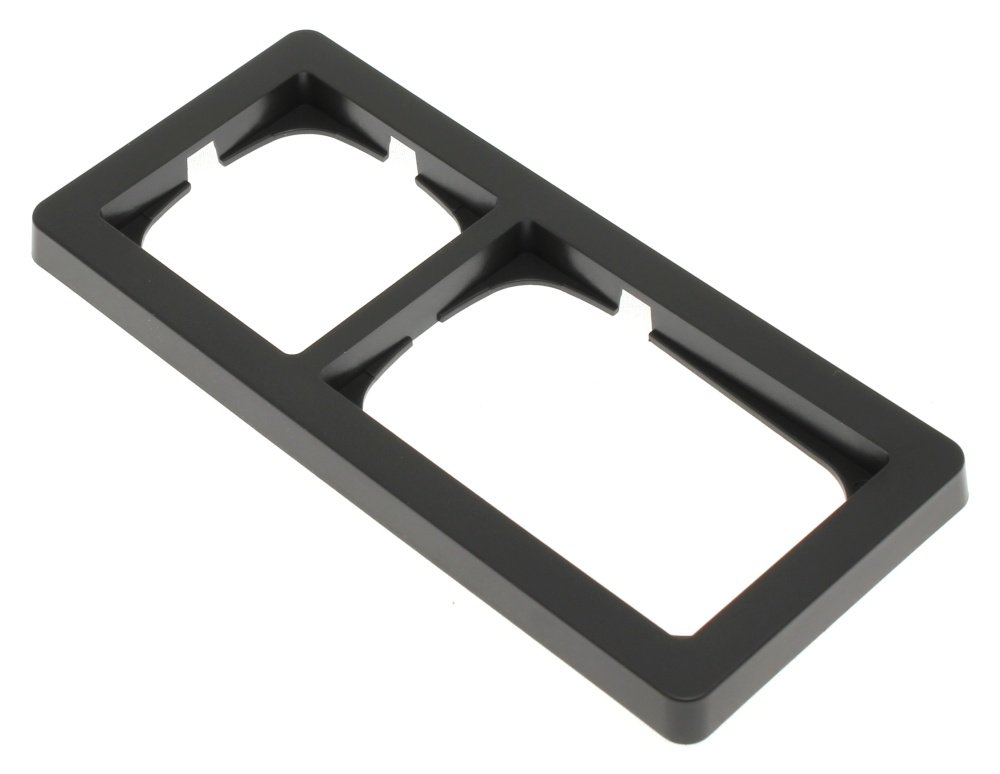 9. LK FUGA Baseline 63 vandret dobbelt ramme i koksgrå, designet til 2x1½ modul indsatser på hvid baggrund.LK FUGA – Baseline 63 vannrett dobbelt ramme, 2x1½ modul, koksgrå