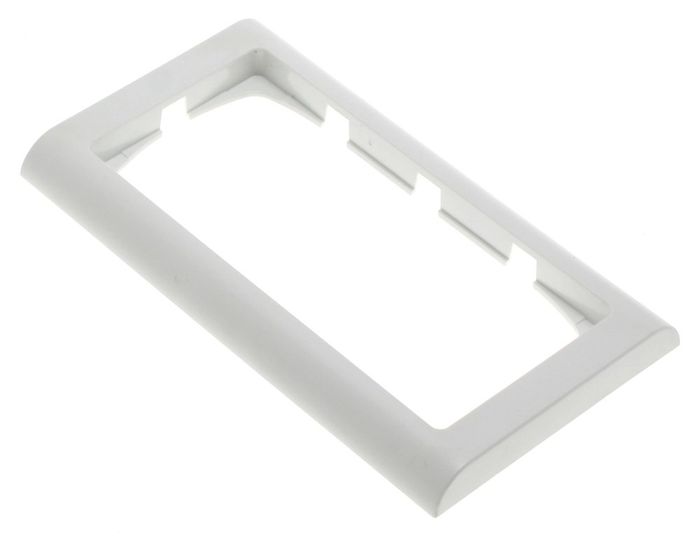 Brukes på innfellingsbokser og forfradåser, men ikke på utvendige underlag. Rammen er 1 modul i bredden og 2 moduler i høyden. Den har ikke en midtsprosse og kan kun brukes til loddrette 2 modul innsatser som f.eks. KNX romtermostaten med display og trykk.