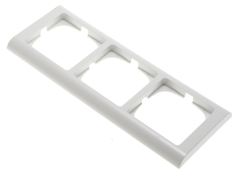 11. LK FUGA Softline 63 ramme til tre moduler i hvid, med afrundede kanter, vist frontalt.LK FUGA – Softline 63 vannrett ramme, 3 modul, hvit