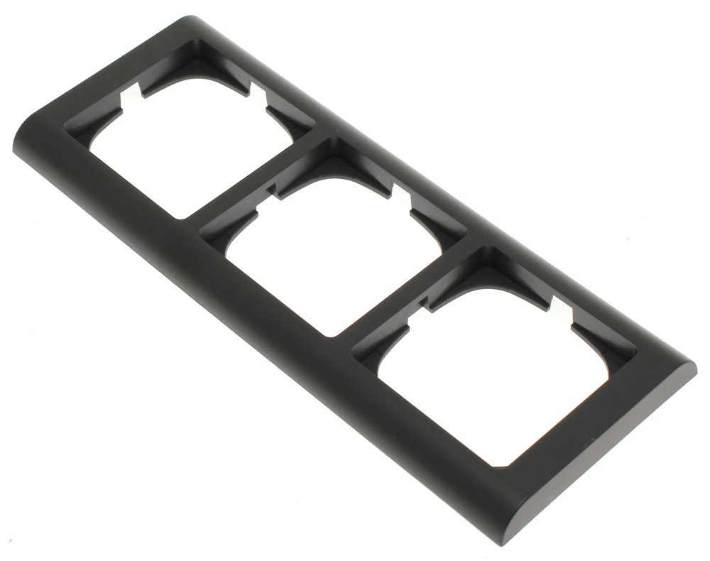 4. LK FUGA Soft 63 vandret designramme i koksgrå med plads til tre moduler, vist med en let tekstureret overflade.LK FUGA – Soft 63 vannrett designramme, 3 modul, koksgrå + teknisk monteringsramme