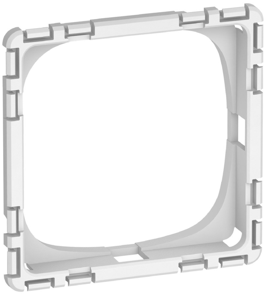 Lauritz Knudsen LK FUGA Slim designramme i hvid, 1 modul bredde og højde, med en dybde på 5 mm og IP20 klassificering.Teknisk monteringsramme til LK FUGA Slim designramme, fremstillet i hvid plast med klik-samlinger til montering.