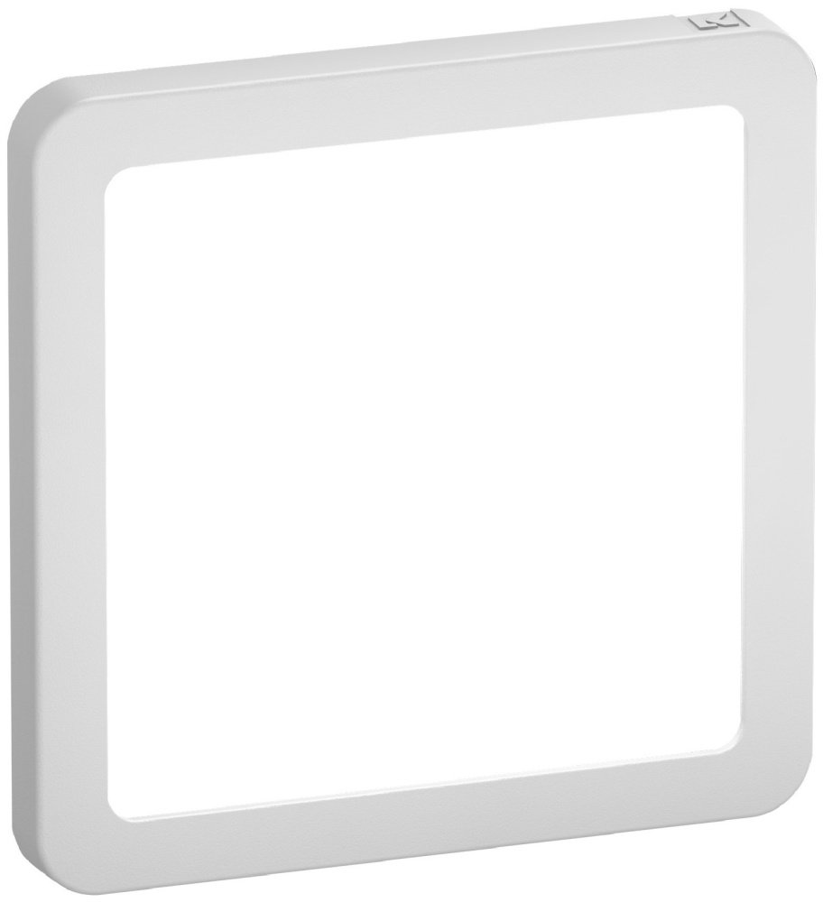 12. LK FUGA Slim designramme i hvid, 2 modul bredde og 2 modul højde, med en dybde på kun 5 mm.LK FUGA – Slim designramme, 2 modul, hvit
