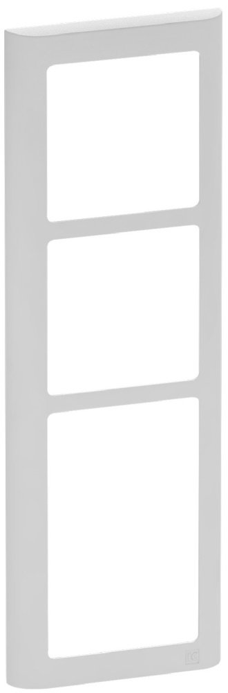4. LK FUGA Soft 63 lodret designramme i lysegrå med plads til 3 moduler, viser den rene og moderne frontflade.LK FUGA – Soft 63 loddrett designramme, 3 modul, lys grå + teknisk monteringsramme