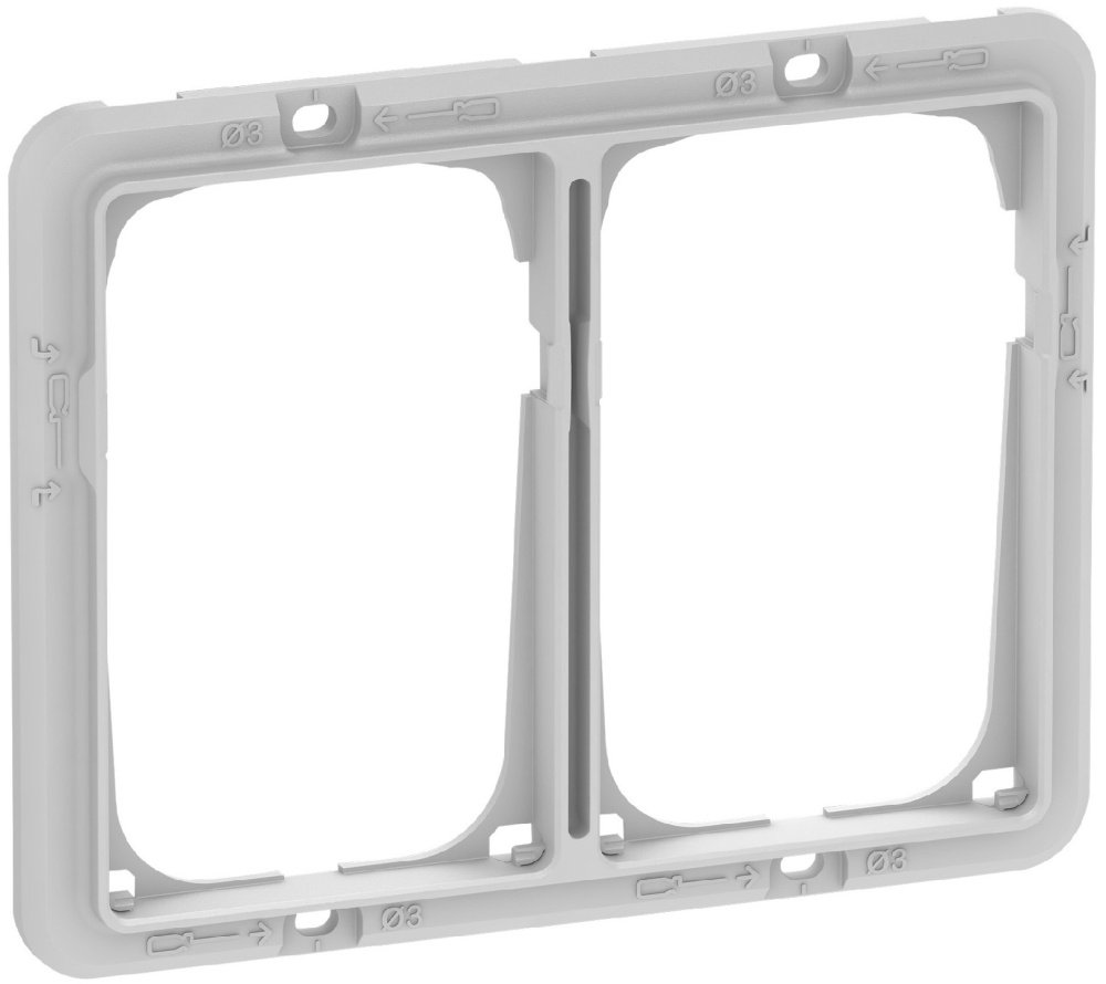 LK FUGA – Soft 63 vannrett dobbelt designramme, 2x1½ modul, lys grå + teknisk monteringsramme