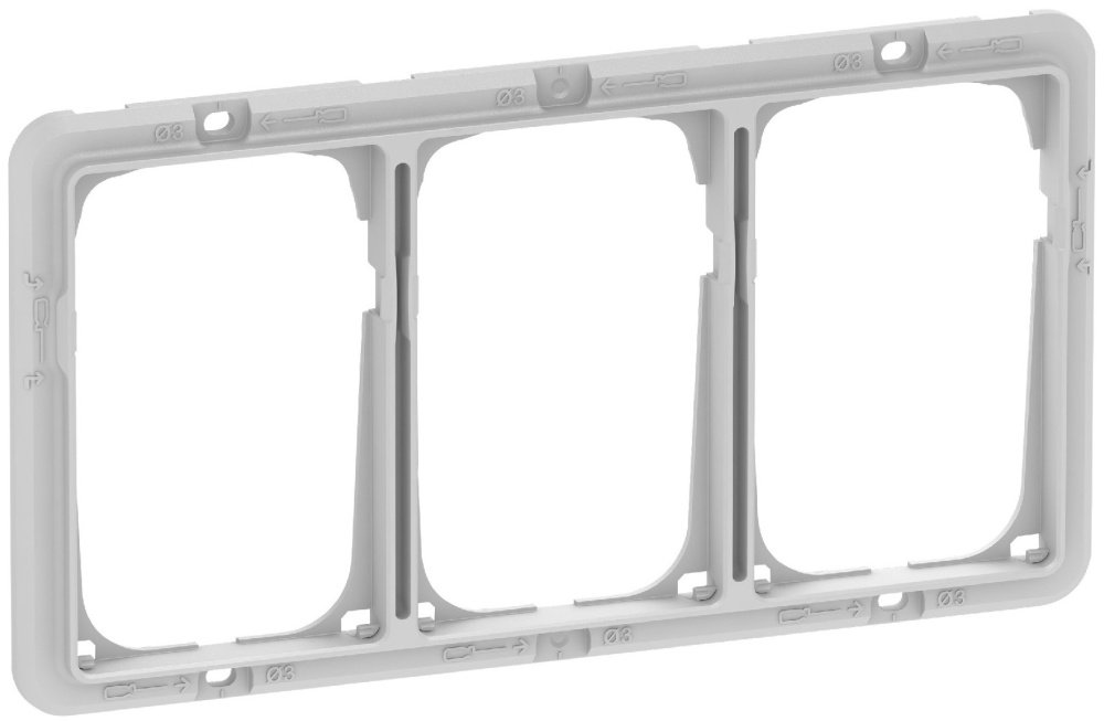 LK FUGA – Soft 63 vannrett trippel designramme, 3x1½ modul, lys grå + teknisk monteringsramme