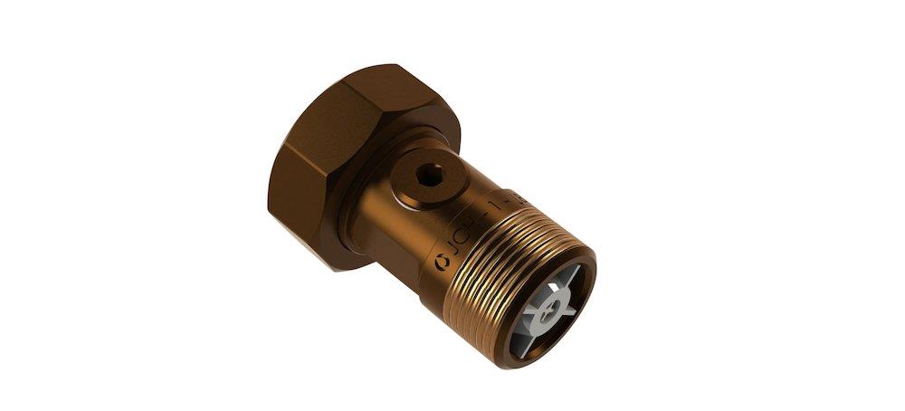 JCH Type 2286 målerforskruning er produsert i rødgods (legering CC499K) og utstyrt med en kontrollerbar kontraventil. Denne modellen er godkjent for drikkevann og overholder kravene til tilbakestrømningssikring mot mediumkategori 2 i henhold til EN1717 samt rørcenters anvisning 015.