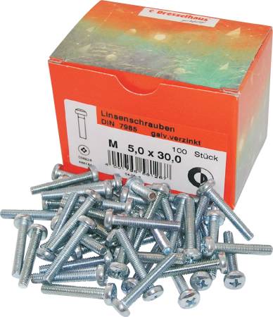 Maskinskruer med panhode og pozidriv spor, elforzinket. Brukes til sammenkobling og montering av mindre maskindeler eller beslag
