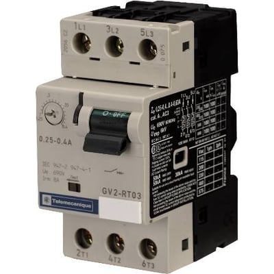 GV2RT (0,25...23A) er motorvern som brukes til beskyttelse av motorer og transformatorer med høy innkoblingsstrøm. De inneholder overbelastnings- og kortslutningsbeskyttelse, hvor kortslutningsutløseren er fast innstilt på ca. 20 ganger den høyest innstilte verdien. Betjeningen skjer med en vippeanordning som tydelig viser ON - OFF. Innstillingsområdet er dekket med et transparent deksel som kan plomberes, og alle er utstyrt med testfunksjon. Kortslutningsbryteevnen avhenger av størrelsen på motorvernet, men ligger mellom 15...100kA/400V. De kan også brukes som forsyningsbryter iht. IEC947-2, noe som betyr at de kan låses i utkoblet stilling, og indikerer samtidig at kontaktsettet er åpent. Til serien hører mange varianter av tilbehør som bl.a. hjelpeblokker, signalkontakter og arbeidstrøm- og underspenningsutløsere.