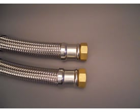 315. Nærbillede af NEOPERL kedelslange med galvaniseret stålflet og 1" omløbere, viser robust konstruktion.Kjeleslange av EPDM gummi m. galv. flett og omløpere, 1" x 1" - 500 mm