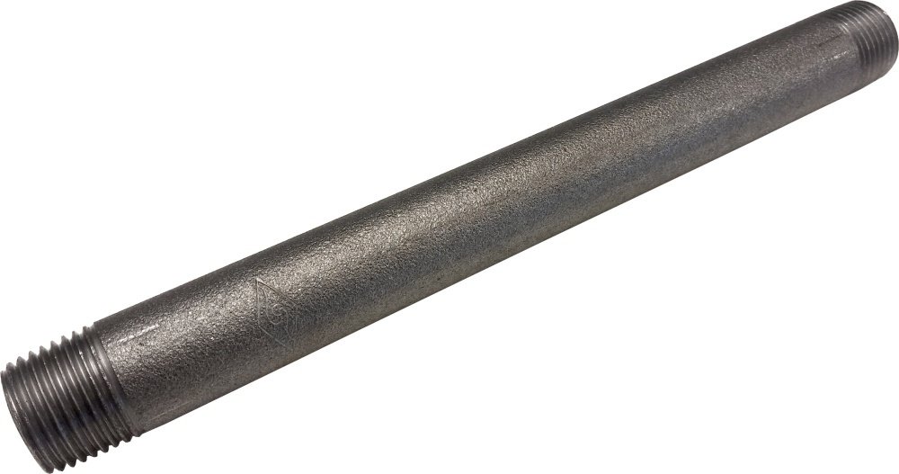 Sort tønnenippel. Overflaten er enten glatt eller blåst. Se beskrivelsen på produktkortet for utdyping. Har utvendig gjengeri begge ender. Bildet er kun veiledende. Tilgjengelig i mange dimensjoner og lengder. Merk: "Svart" er et navn for rør og beslag av ubehandlet metall. Det indikerer ikke en farge.