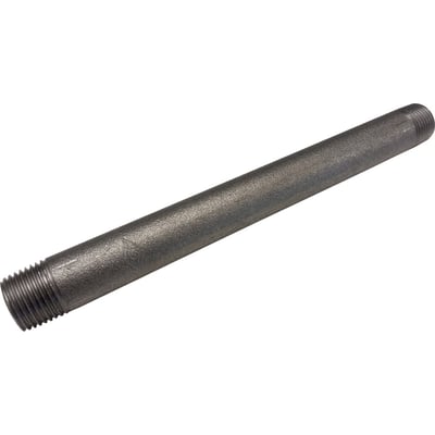 Sort tønnenippel. Overflaten er enten glatt eller blåst. Se beskrivelsen på produktkortet for utdyping. Har utvendig gjengeri begge ender. Bildet er kun veiledende. Tilgjengelig i mange dimensjoner og lengder. Merk: "Svart" er et navn for rør og beslag av ubehandlet metall. Det indikerer ikke en farge.