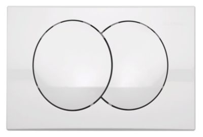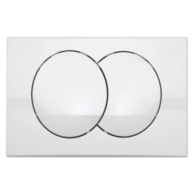 Denne trykkplaten er et praktisk valg som passer inn i de fleste baderomsmiljøer med sitt nøytrale design.