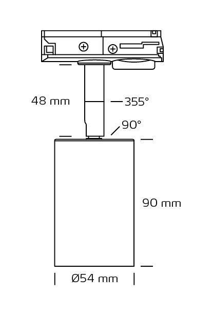 Nordtronic Track Light 1-faset skinnespot i hvid, monteret på en hvid skinne, viser spottet fra siden.Nordtronic Track Light 1-faset skinnespot i hvid, vinklet mod kameraet, viser GU10 fatningens åbning.Nærbillede af Nordtronic Track Light 1-faset skinnespot i hvid, fronten er åben og viser GU10 fatningen indeni.Nordtronic Track Light 1-faset skinnespot i hvid, vist med fronten lukket og monteret på skinnen.Nordtronic Track Light 1-faset skinnespot i hvid, vist fra undersiden, med synlig monteringsmekanisme til skinnen.Teknisk tegning af Nordtronic Track Light 1-faset skinnespot i hvid med dimensioner som diameter, højde og justeringsvinkler.