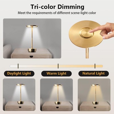 Oppladbar LED bordlampe, inne/ute, gull, touchdimbar, CCT, IP54 utendørs, inkl. batteri (5W, 500lm, RA80)