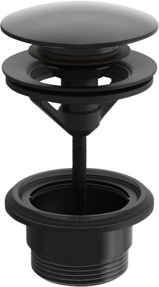 Komplett push-up bunnventil i kompositt, som kan brukes til servanter med og uten overløp. Kan bygges om til fast-åpen funksjon. Gjenge: 1 1/4".