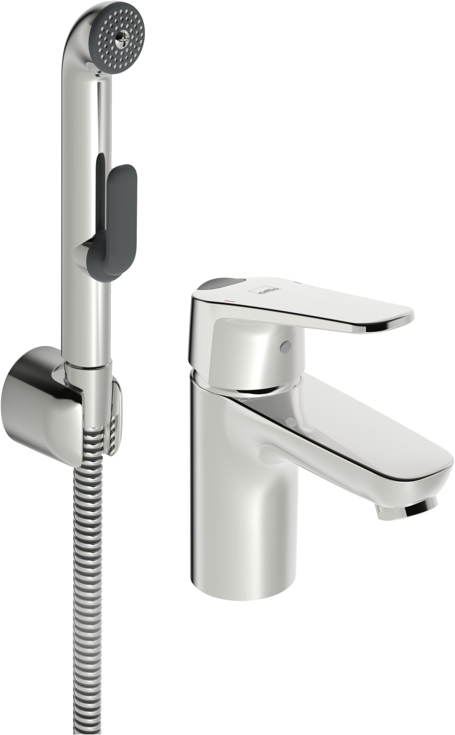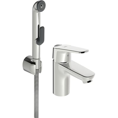 Servantarmatur med Bidetta hånddusj og Eco-funksjon. Begrenser vannmengde og temperatur med Eco-knapp. Inkl. 1750 mm slange og veggfeste.