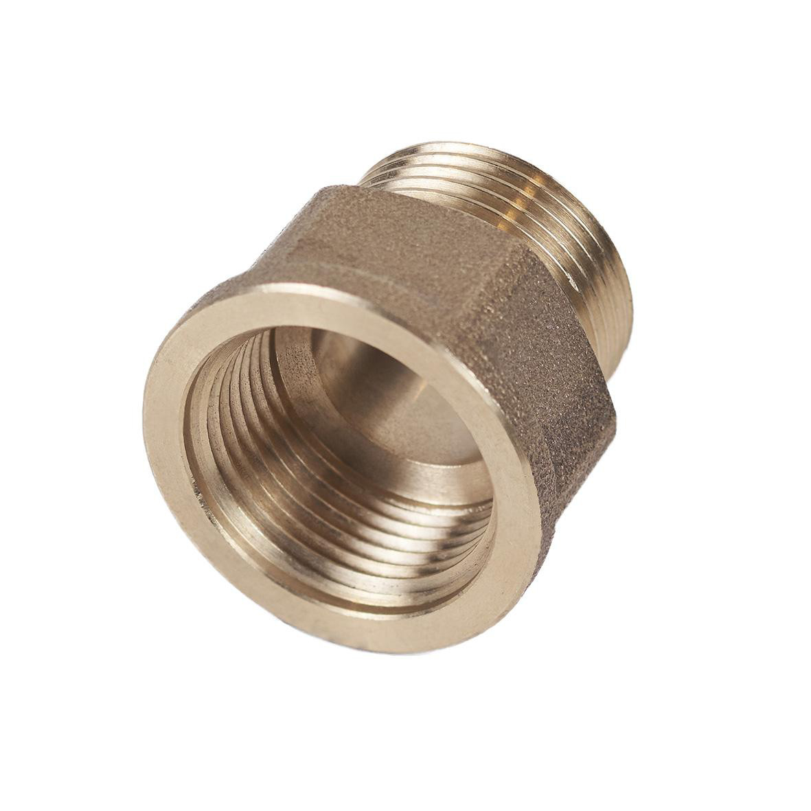 Roth overgang med ¾" euro-red x ¾" muffe rørgjenge. Disse rødgods fittings er designet for bruk sammen med Roth fordelerkoblinger.