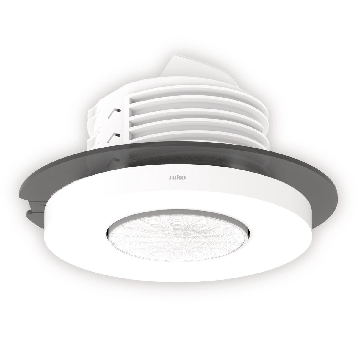 Sensoren har et flatt og diskret design som passer inn i ethvert interiør. Fargen kan lett endres til svart ved å bytte ut dekkringen.