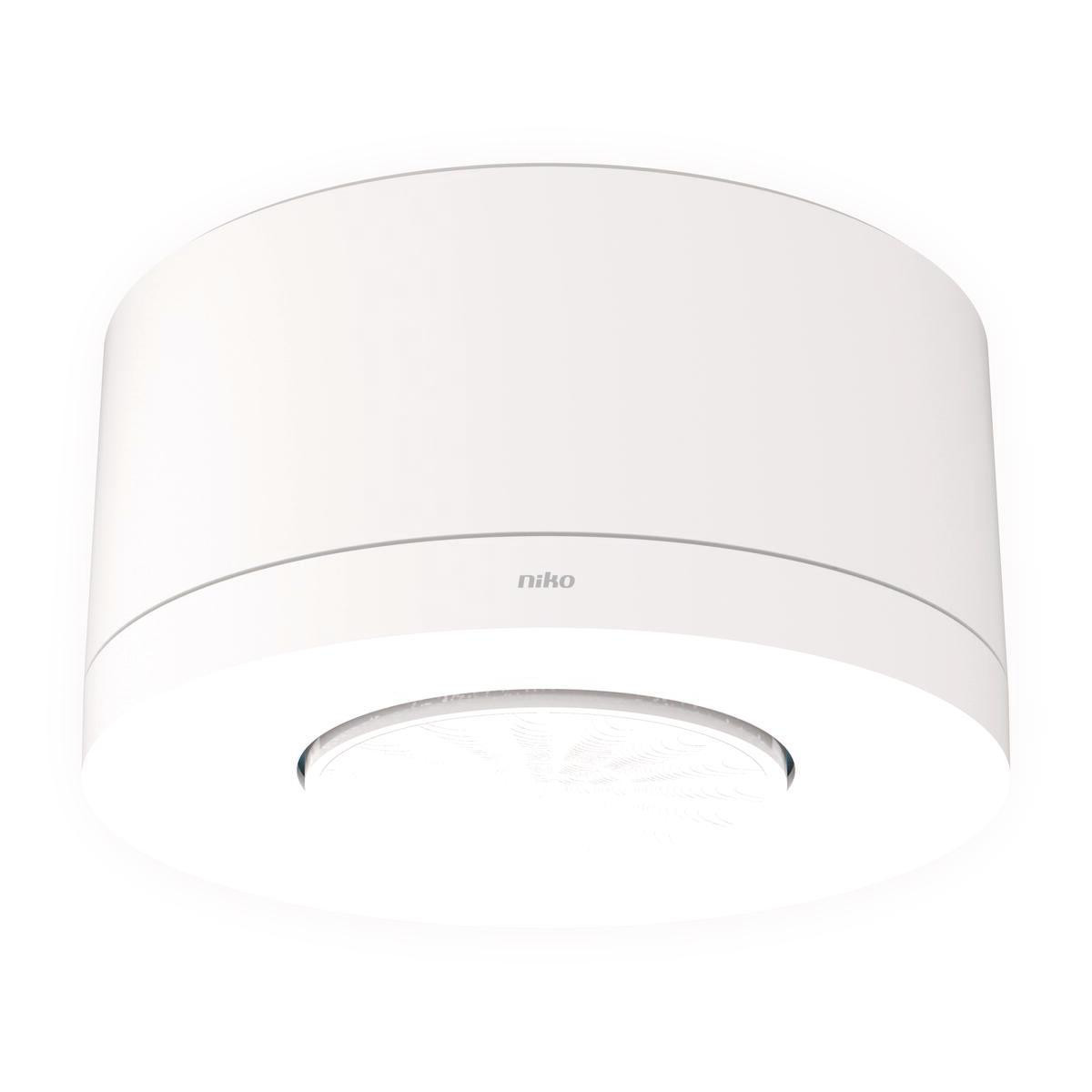 DALI-2 sertifisert tilstedeværelsessensor fra Niko for BMS eller sekundær sensor, medium rekkevidde, for påmontert installasjon. Utvid rekkevidden for en DALI-2 mastersensor.